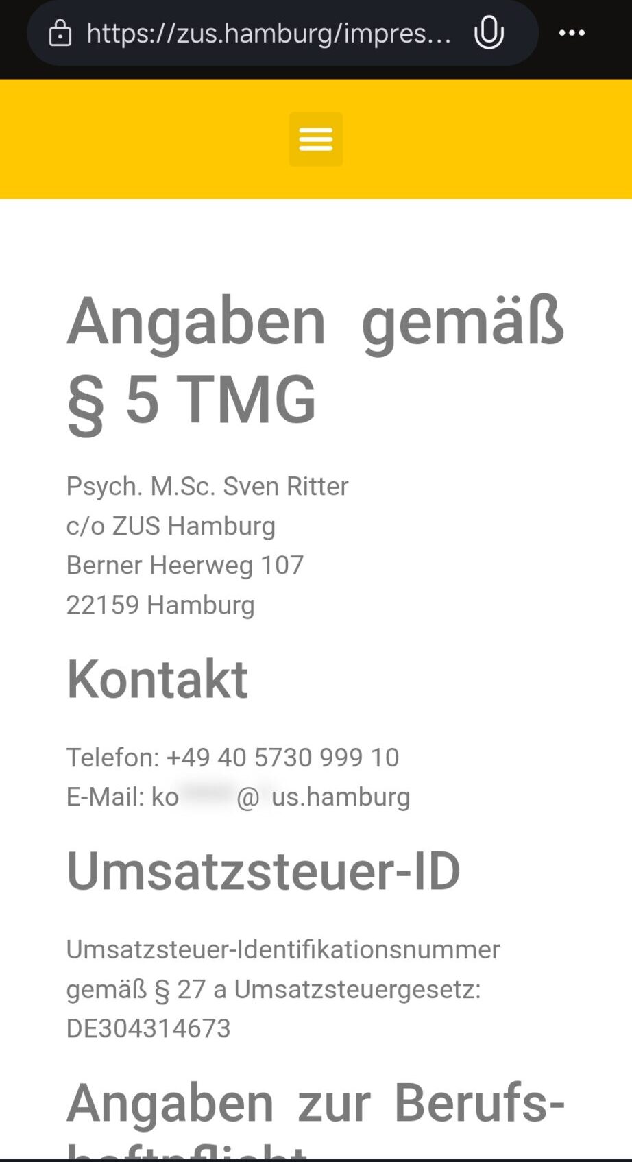 Der Beleg: Gemäß § 5 TMG wird als einziger Verantwortlicher Sven Ritter (Psych. M.Sc.) genannt.